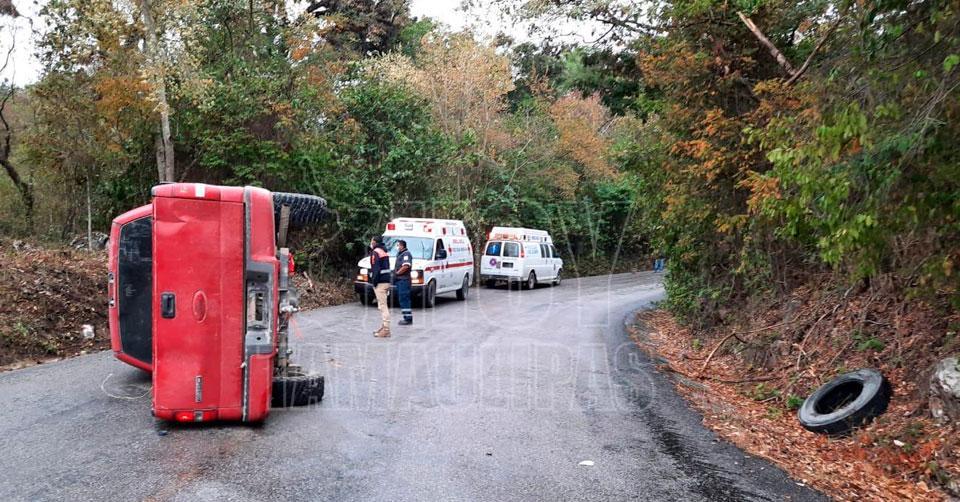 Dos lesionados al volcar camioneta en la carretera Tula-Ocampo