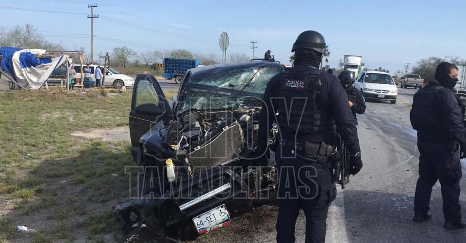Dos lesionados dejó choque entre camioneta y tráiler en la carretera Victoria-Jaumave