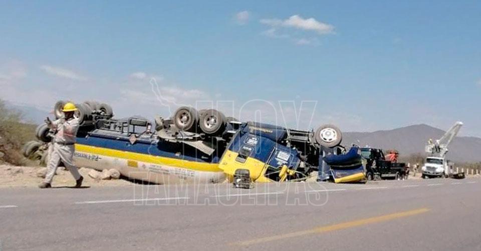 Volcó pipa cargada con gas butano en la carretera Tula-Victoria