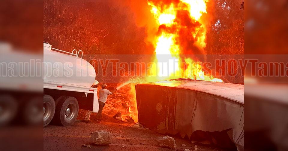 Chofer de tráiler murió calcinado tras volcadura en la carretera Tula-Ocampo