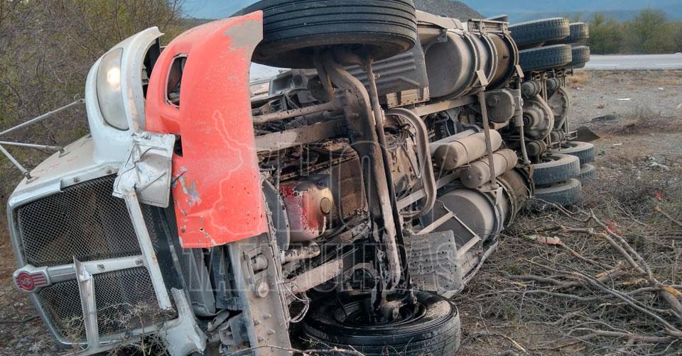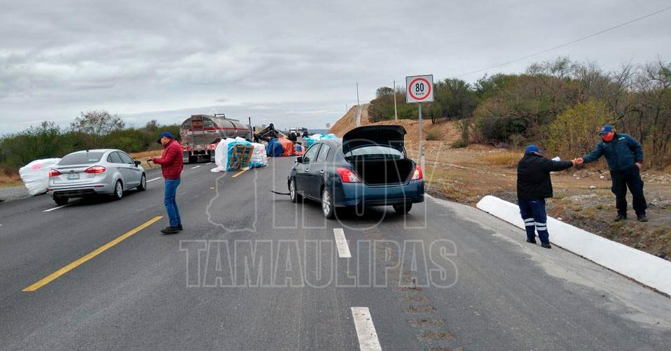 Vuelca tráiler en la carretera Victoria-Tula; chofer resultó ileso