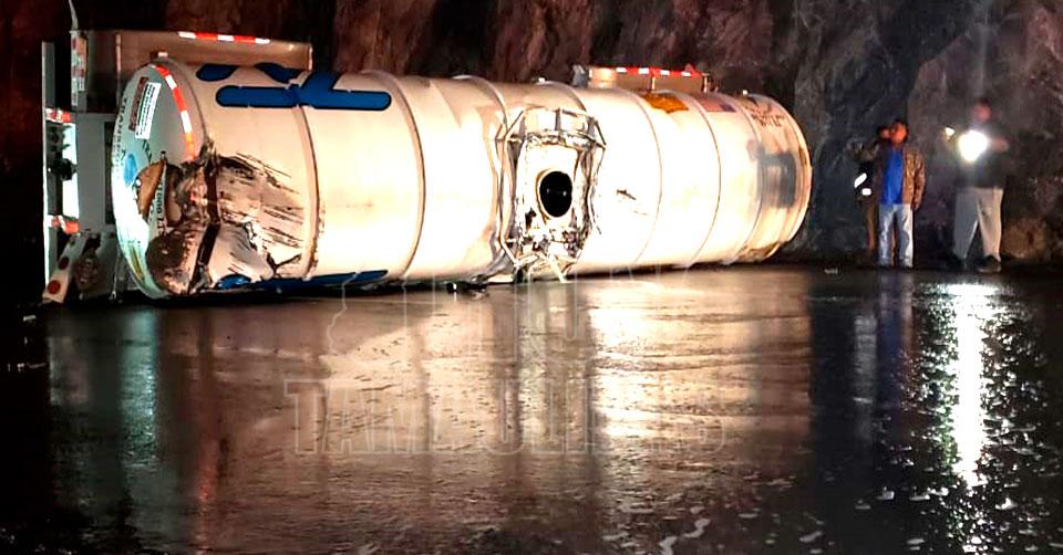 Cerca de Ciudad Victoria: Vuelca tráiler con diésel y cierran la carretera Rumbo Nuevo