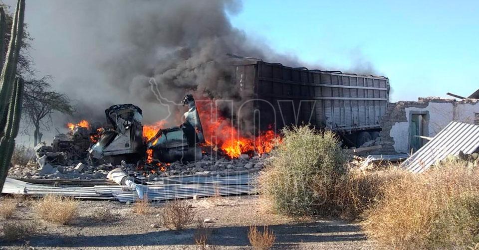 Volcadura e incendio de tráiler deja un lesionado en Tula, Tamaulipas