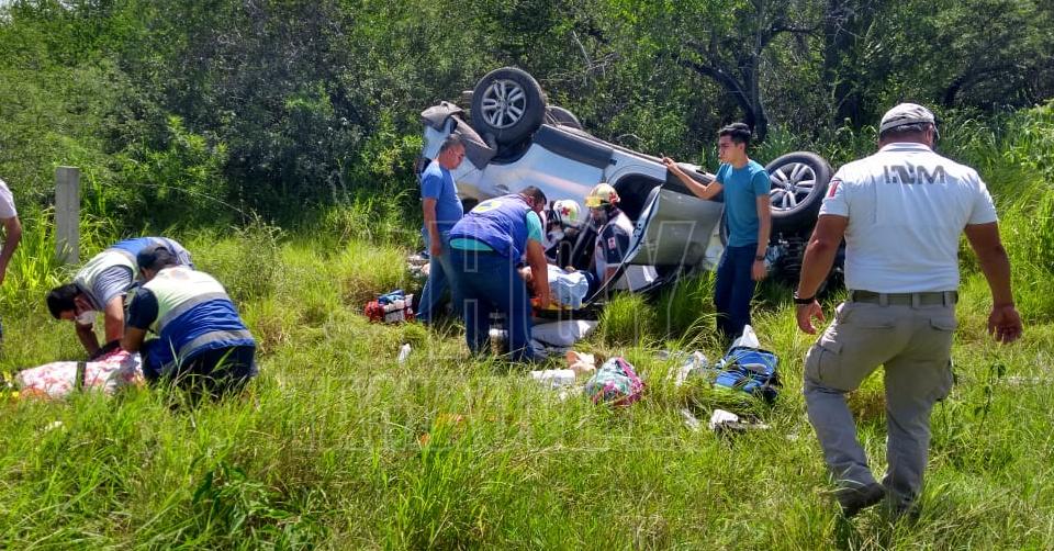 Volcadura deja tres lesionados en la carretera Soto La Marina-Los Rayones