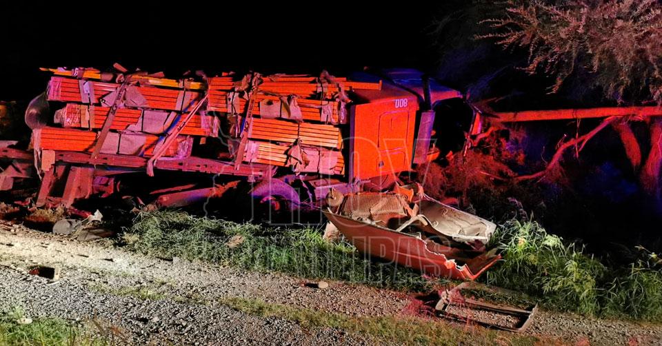 Tráiler se salió del camino y chocó con poste de luz en Güemez