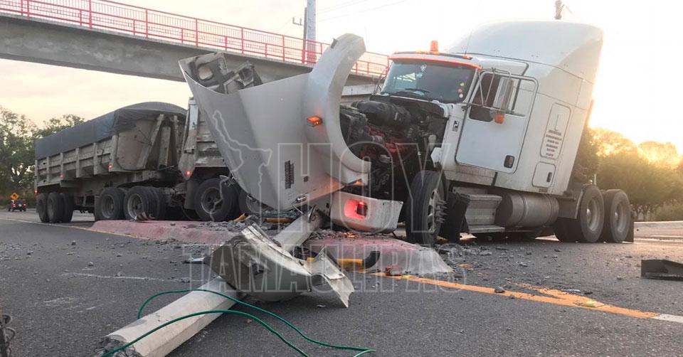 Choque de tráiler dejó cuantiosos daños materiales en la Tula-Victoria
