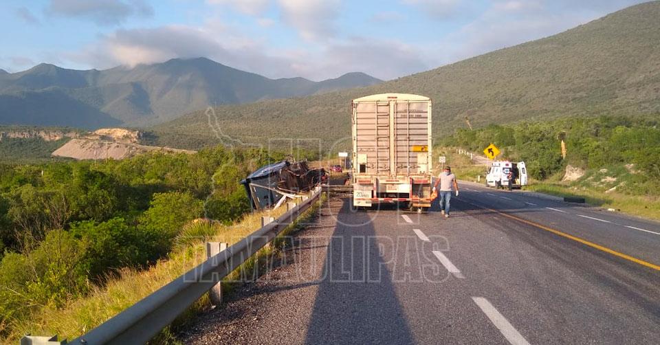 Volcadura de tráiler deja tres lesionados en la Soto la Marina-Aldama
