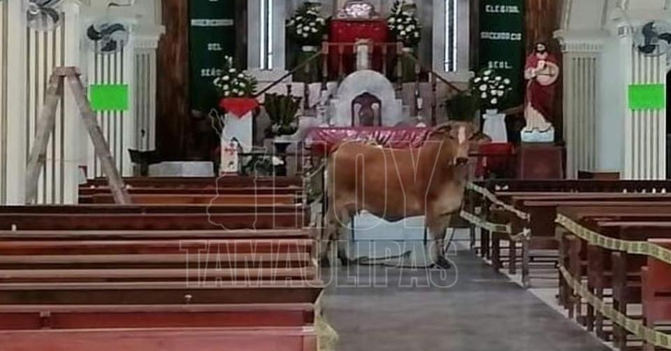 Vaca huye del rastro y se refugia en iglesia en Tampico Alto