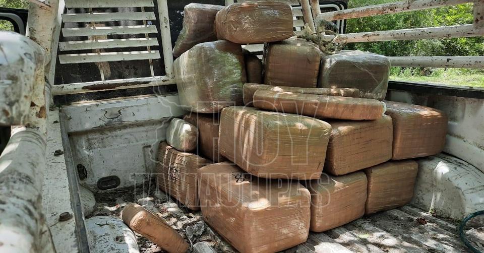 Aseguran policías 24 paquetes de marihuana y dos camionetas en Padilla, Tamaulipas