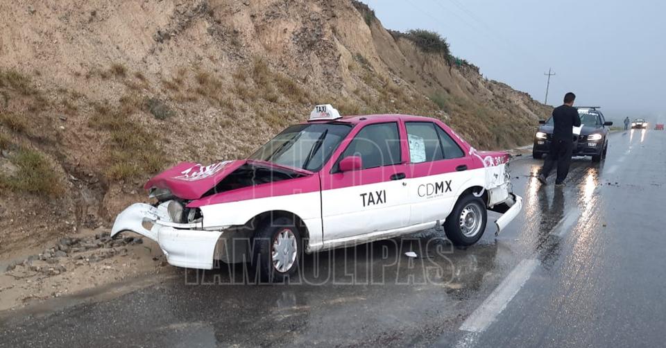 Taxista choca contra el talud de la sierra en Tula; hay dos lesionados