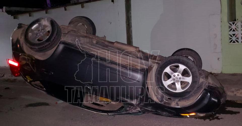 Choque con volcadura dejó dos lesionados en Camargo, Tamaulipas