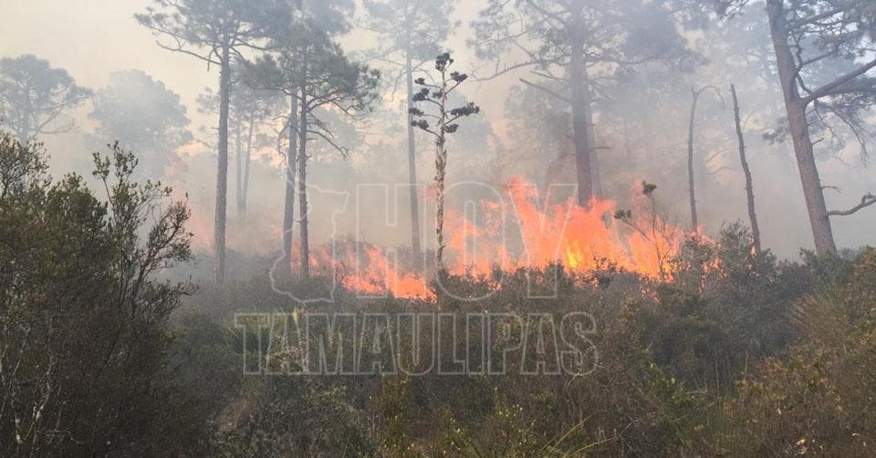 Combate Protección Civil de Miquihuana feroz incendio en la sierra