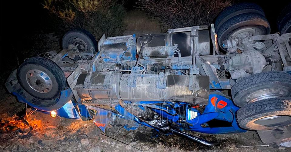 Rescatan a trailero luego de volcar en la carretera Zaragoza-Victoria