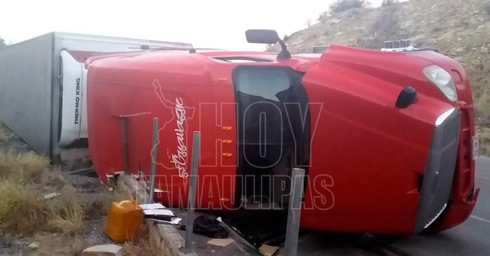 Volcadura deja un conductor lesionado en la carretera Llera-Mante