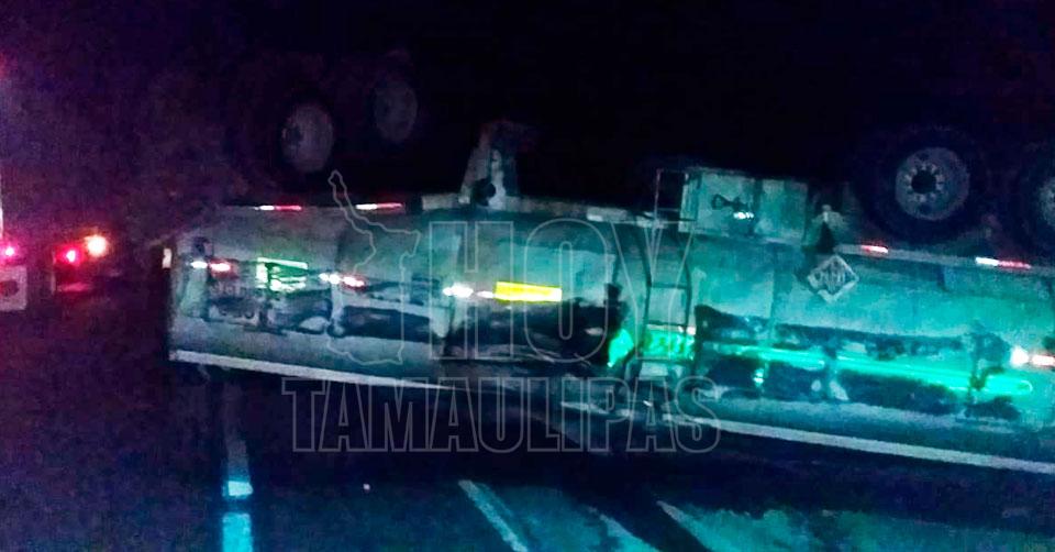 Vuelca auto tanque con diésel cerca de Ciudad Victoria