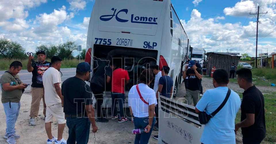 Distraída conductora provoca choque y retrasa viaje de turistas en la Victoria-Monterrey