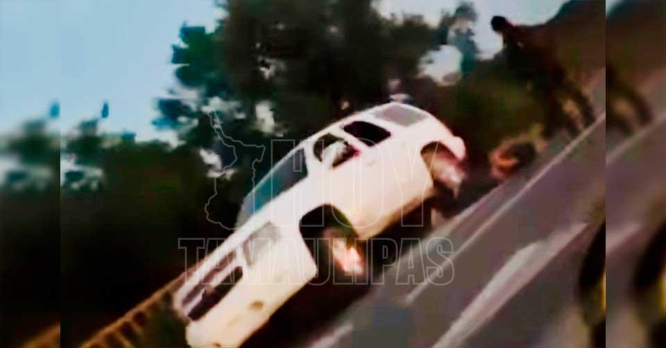 Familia cae a un barranco cuando viajaba rumbo a Mante; Guardia Estatal brinda auxilio