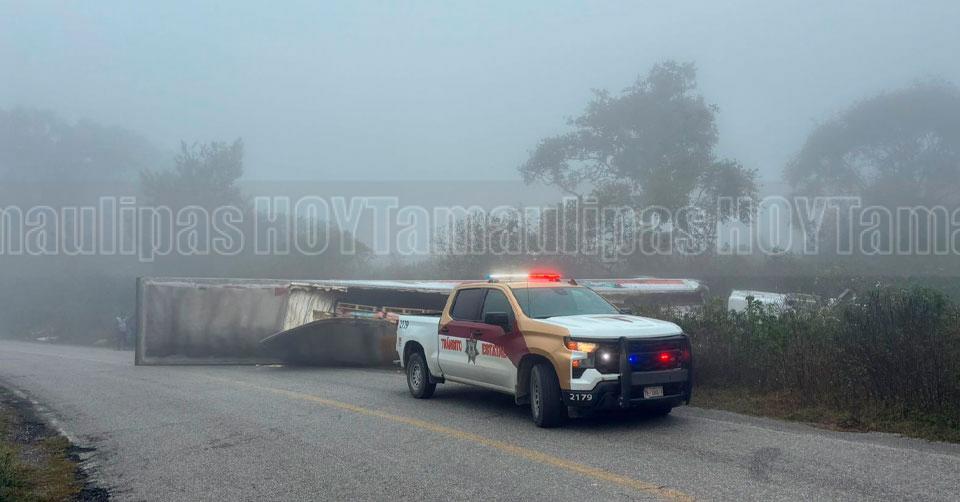 Vuelca tráiler cargado con brócoli en la carretera Tula–Victoria