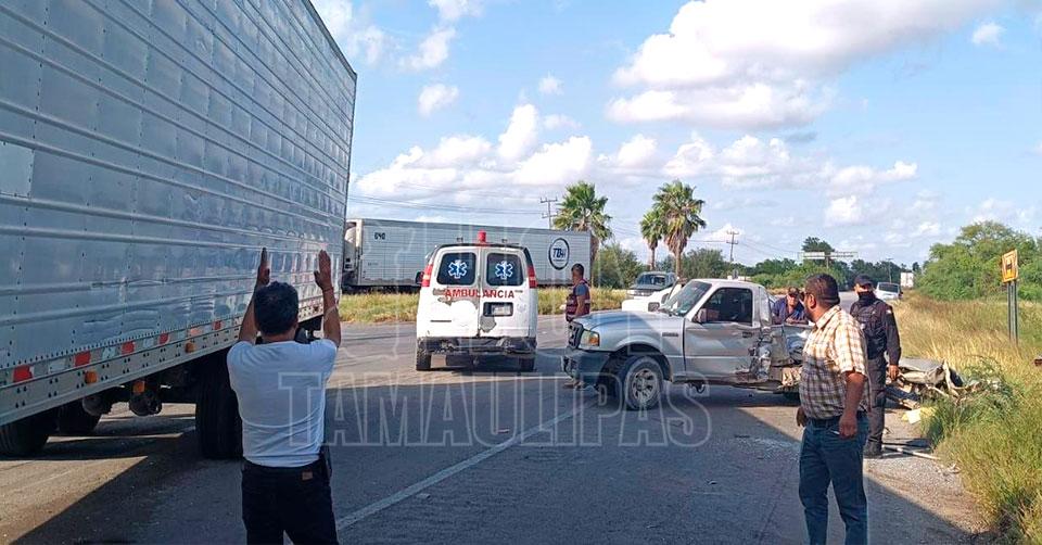 Tráiler destruyó una camioneta en la carretera Zaragoza-Victoria