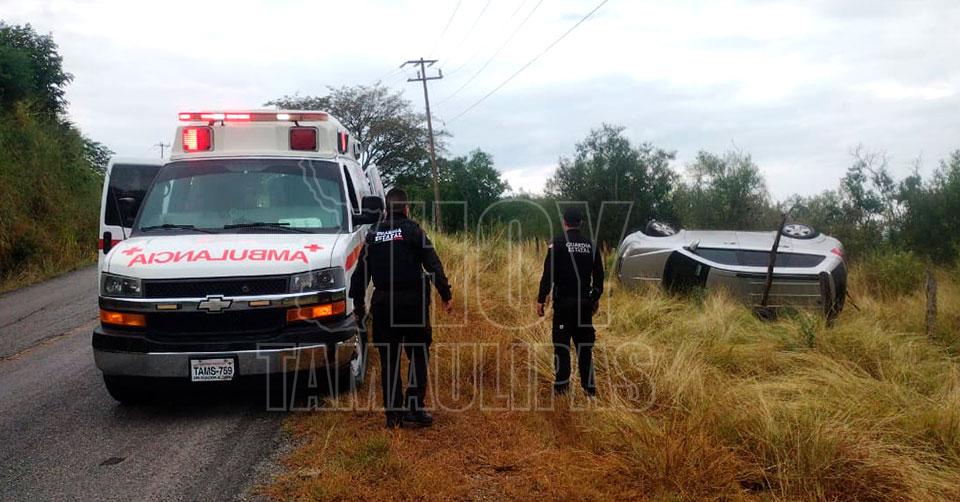 Madre y dos menores resultaron lesionados en volcadura en Aldama