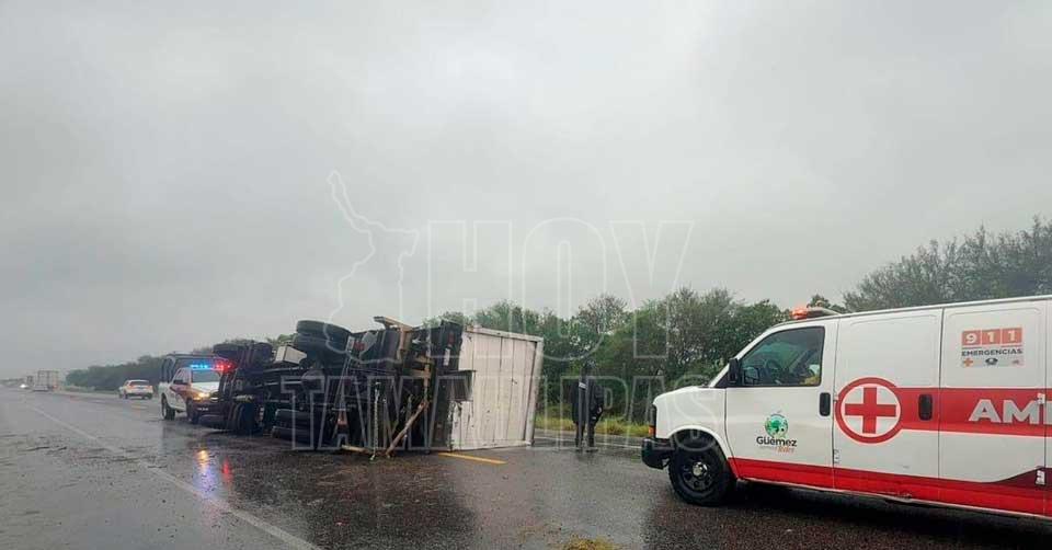 Cierre parcial en la Victoria–Matamoros por volcadura de tractocamión en Padilla