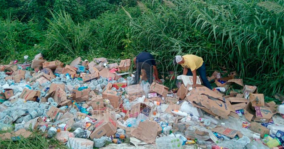 Rapiñan abarrotes tras volcadura de camión en la Victoria-Monterrey