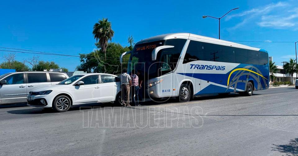 Autobús de Transpaís provoca choque por alcance en cruce de San Fernando