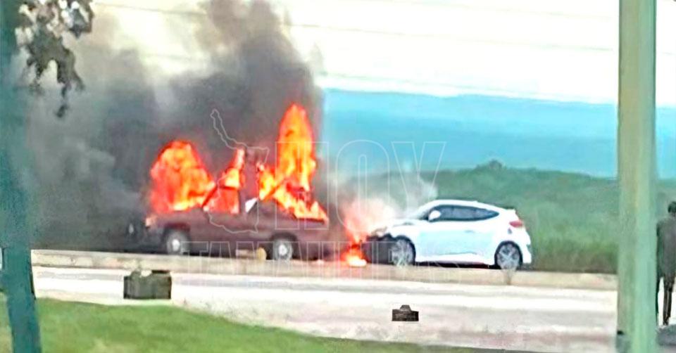 Se queman vehículos de centroamericanos en retén de San Fernando