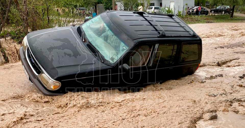 Camioneta queda varada en calles de Cruillas al atravesar fuerte corriente