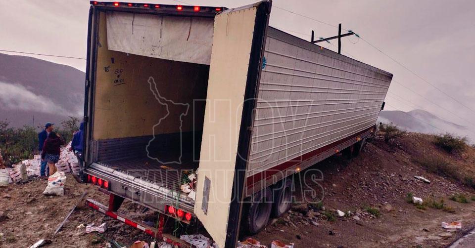 Rapiñan carga de mango tras accidentarse tráiler en la Tula-Victoria