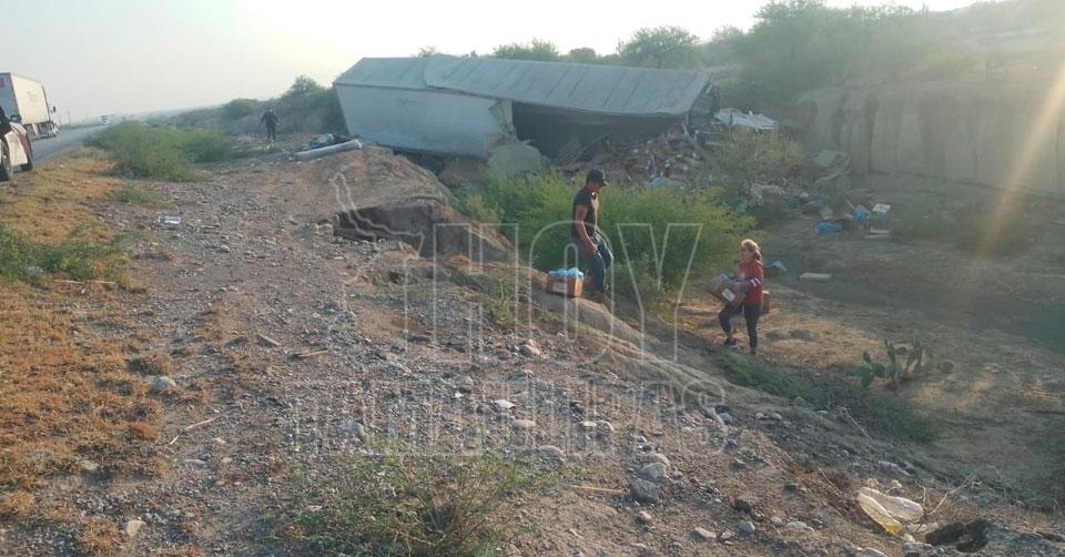 Rapiñan chile serrano y pollo tras choque y volcadura de tráiler en Tula
