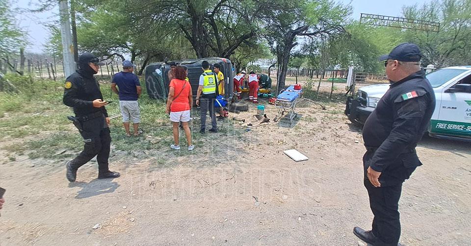 Ejidatarios sufren volcadura y resultan lesionados en la Victoria-Monterrey