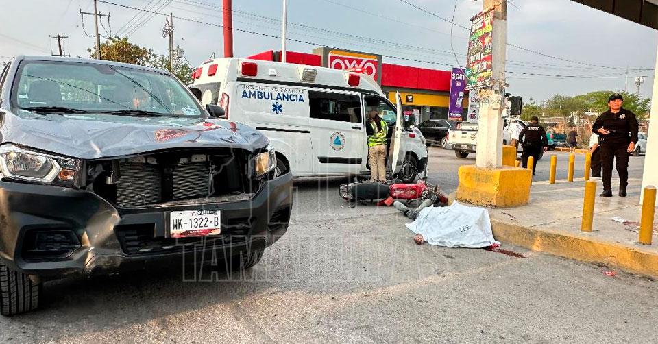 Amigos en moto sufren accidente vial en El Mante; hay un muerto y uno está grave
