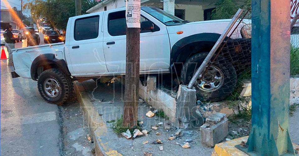 Se queda sin frenos y choca con auto y barda en San Fernando