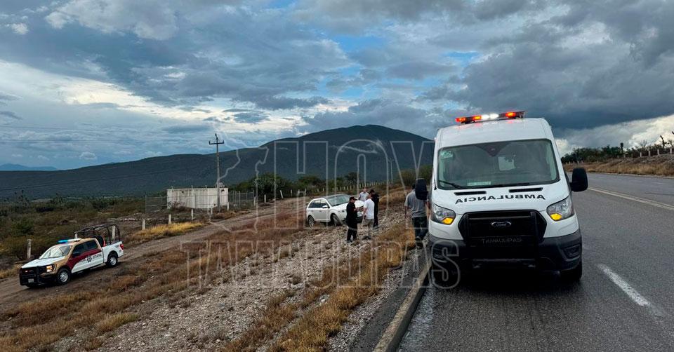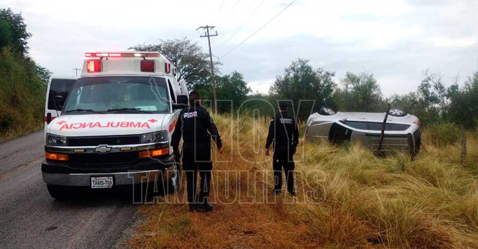 Se le ponchó una llanta y terminó volcado en la carretera Tula–Victoria