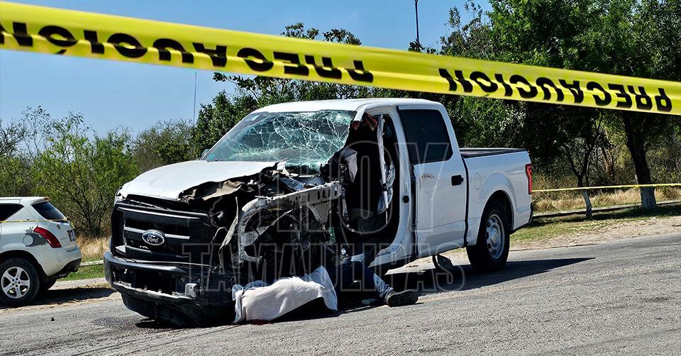 Muere hombre en choque entre pick-up y camión cañero cerca de El Mante
