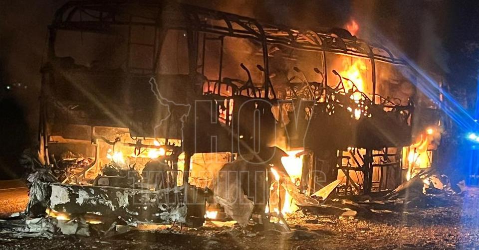 Incendio consume autobús de pasajeros en la carretera Llera – González