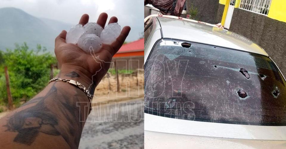Granizada destruye autos en Palmillas, Tamaulipas