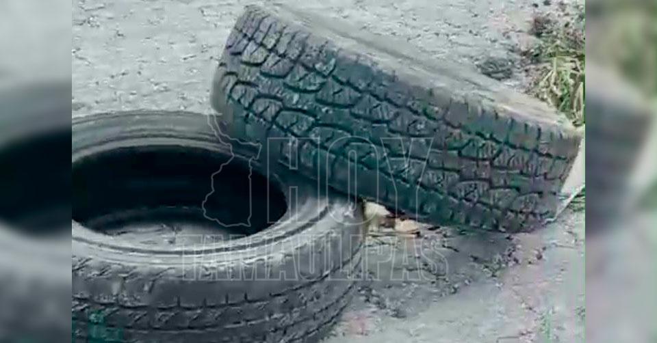 Con llantas advierten a conductores de megabaches en carretera San Fernando-Matamoros