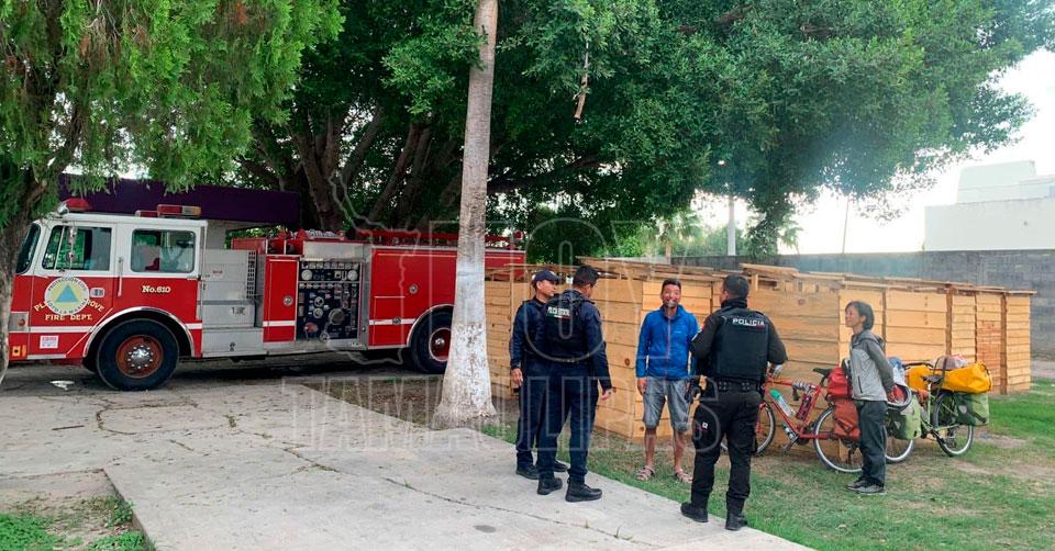Apoyan con hidratación y seguridad a cicloviajeros japoneses en su paso por Tamaulipas