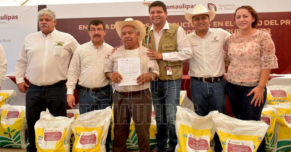 Entrega Gobierno de Tamaulipas insumos a beneficiarios del campo en San Carlos
