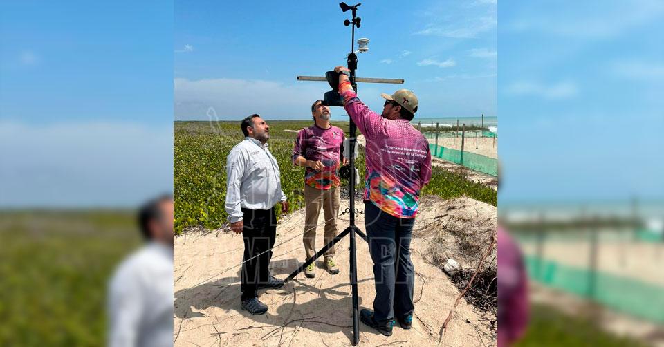 Instalan en La Pesca antenas para mejorar la protección de los huevos de tortuga Lora