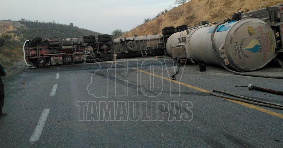 Continúa cerrada la Rumbo Nuevo por volcadura de pipa que transportaba gasolina