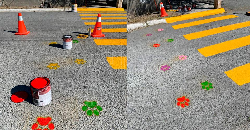 Pintan huellitas de colores para concientizar sobre el cuidado de los perritos en Tamaulipas