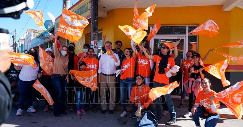 Llega caravana de Díez en Movimiento a Xicoténcatl y lo pinta de naranja
