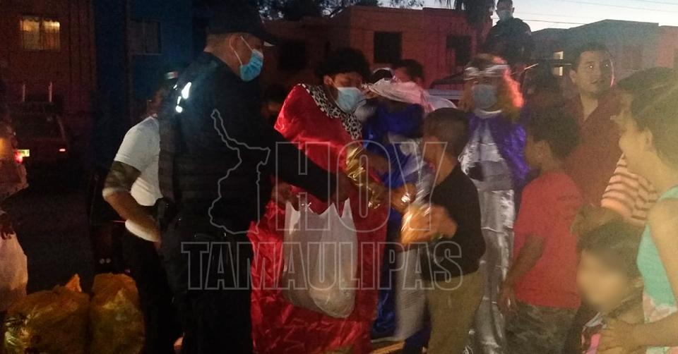 Regalan Policía Estatal, Cruz Roja y PC rosca de Reyes a niños de Valle Hermoso