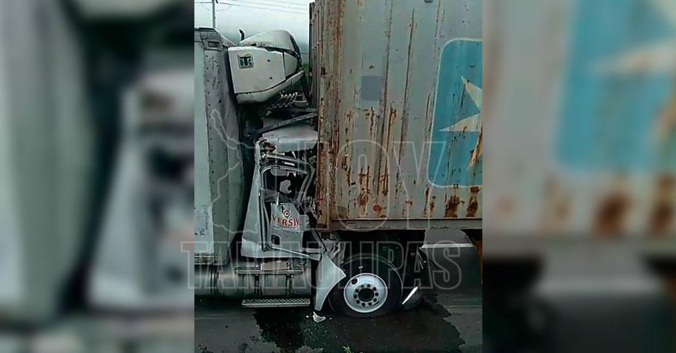 Chofer de camión queda prensado tras choque en la Victoria-Monterrey