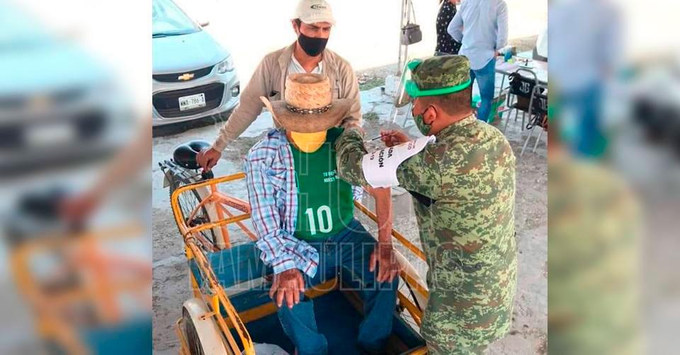 A don Andrés su hijo lo llevó en triciclo a recibir la vacuna en Tamaulipas