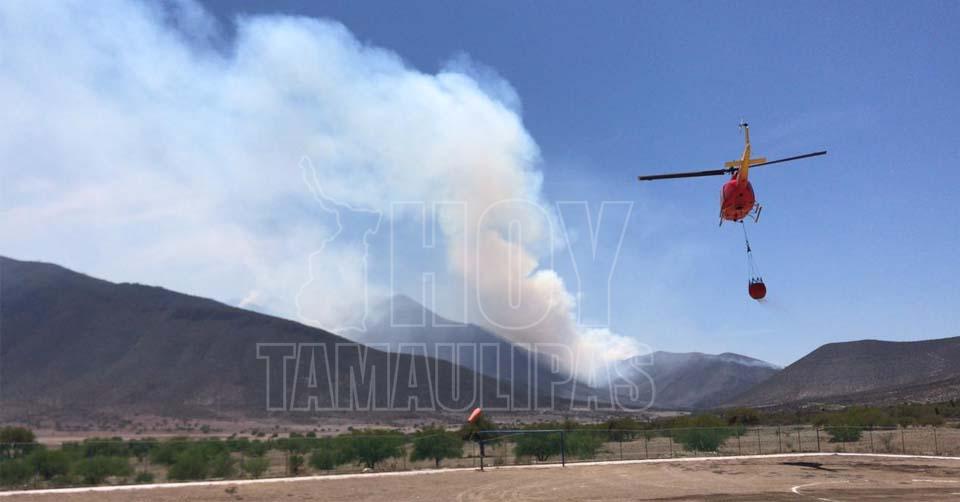 Se suma helicóptero de PC de Tamaulipas al combate del incendio en Tula