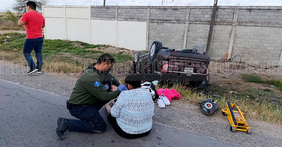 Choque con volcadura en la carretera Matamoros–Victoria dejó a mujer lesionada